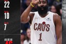 [流言板]不关键不打!哈登全场仅命中两记三分球,均来自末节